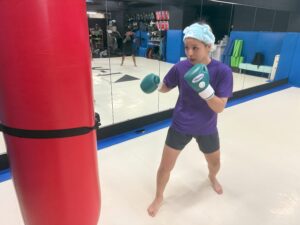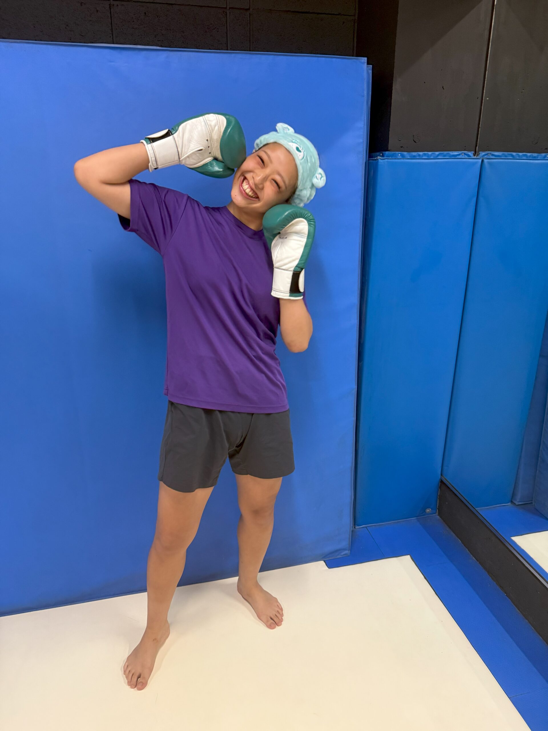 過去の試合を振り返ってみると、デビュー戦の記憶はほとんどないと言います。緊張で頭が真っ白になり、「気づいたら戦って、気づいたら終わってたんですよ」。デビュー戦は2024年11月16日Krush.167で萩原愛選手を相手にKO勝利を収めている。