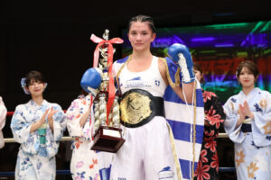 SAHOは、24年3月にアントニア・プリフティを判定で下し第3代K-1 WORLD GP女子フライ級王者に。25年7月のララ・フェルナンデス戦でK-1 WORLD GP女子フライ級王座防衛に成功した。